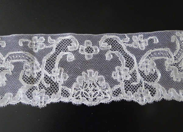 CIRCA 19THC. MECHLIN LACE. A lovely design on this fine Mechlin lace border. Good quality thread and superb workmanship. Measuring apprx.35" by 2 3/4" Good condition. (Item #AL89)