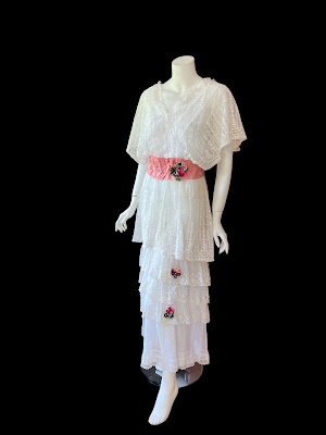 CIRCA 1900, LADIES EDWARDIAN LACE TEA DRESS W/RIBBONS AND FLOWERS FLOWERS